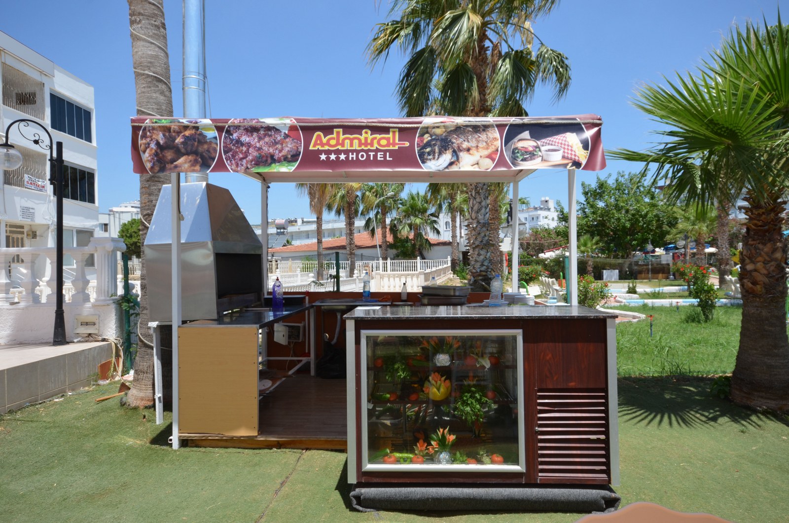 Our indoor restaurant is for 200 people and outdoor restaurant, which is by the pool and with sea view, (a la carte and fast-food) for 400 people.